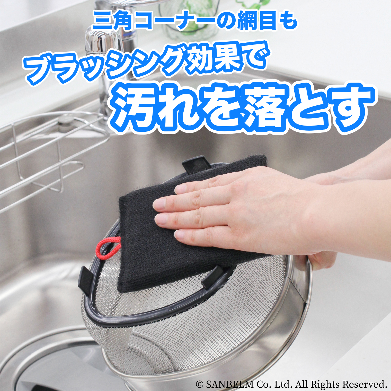 排水口や三角コーナーの細かい網目までしっかり洗えますよ。