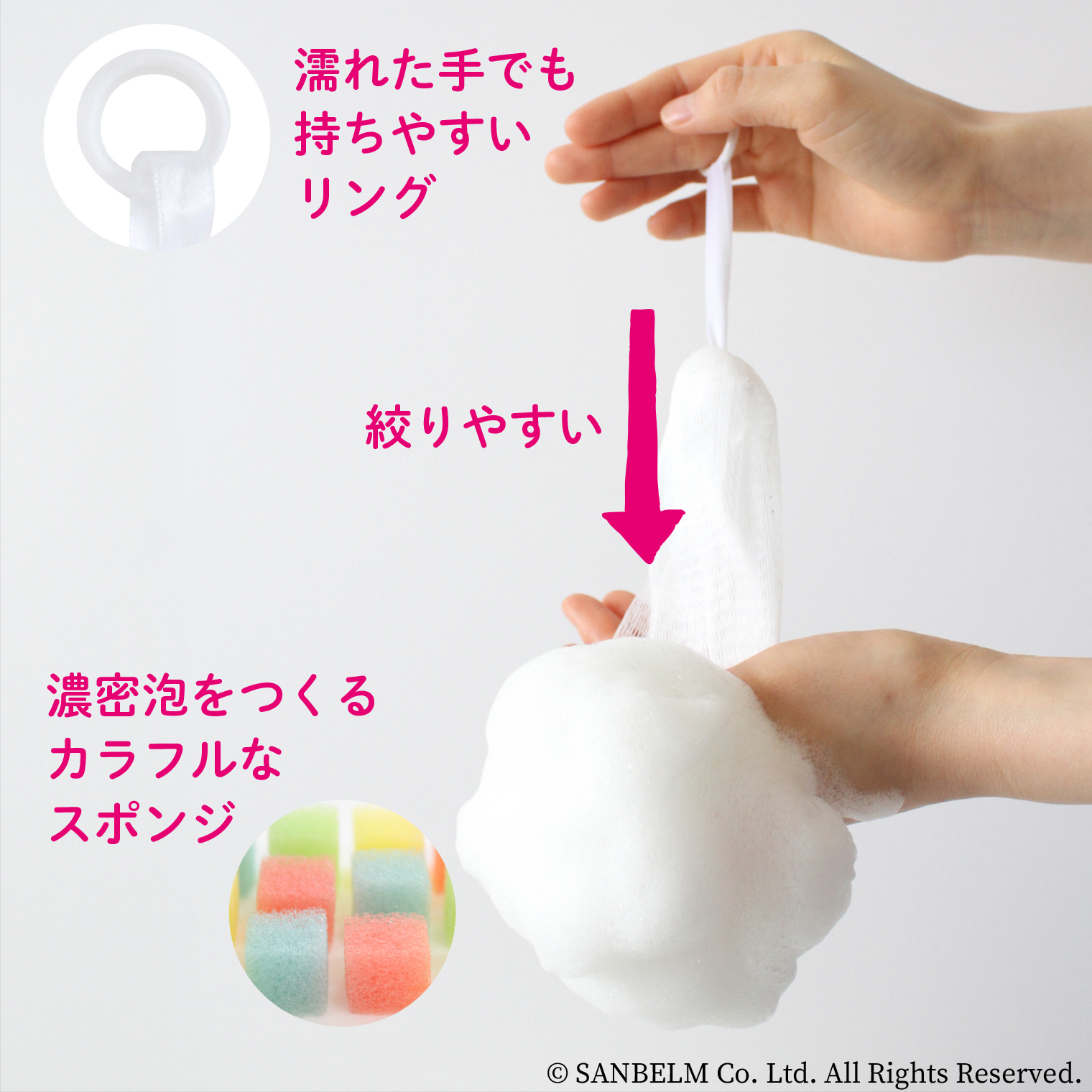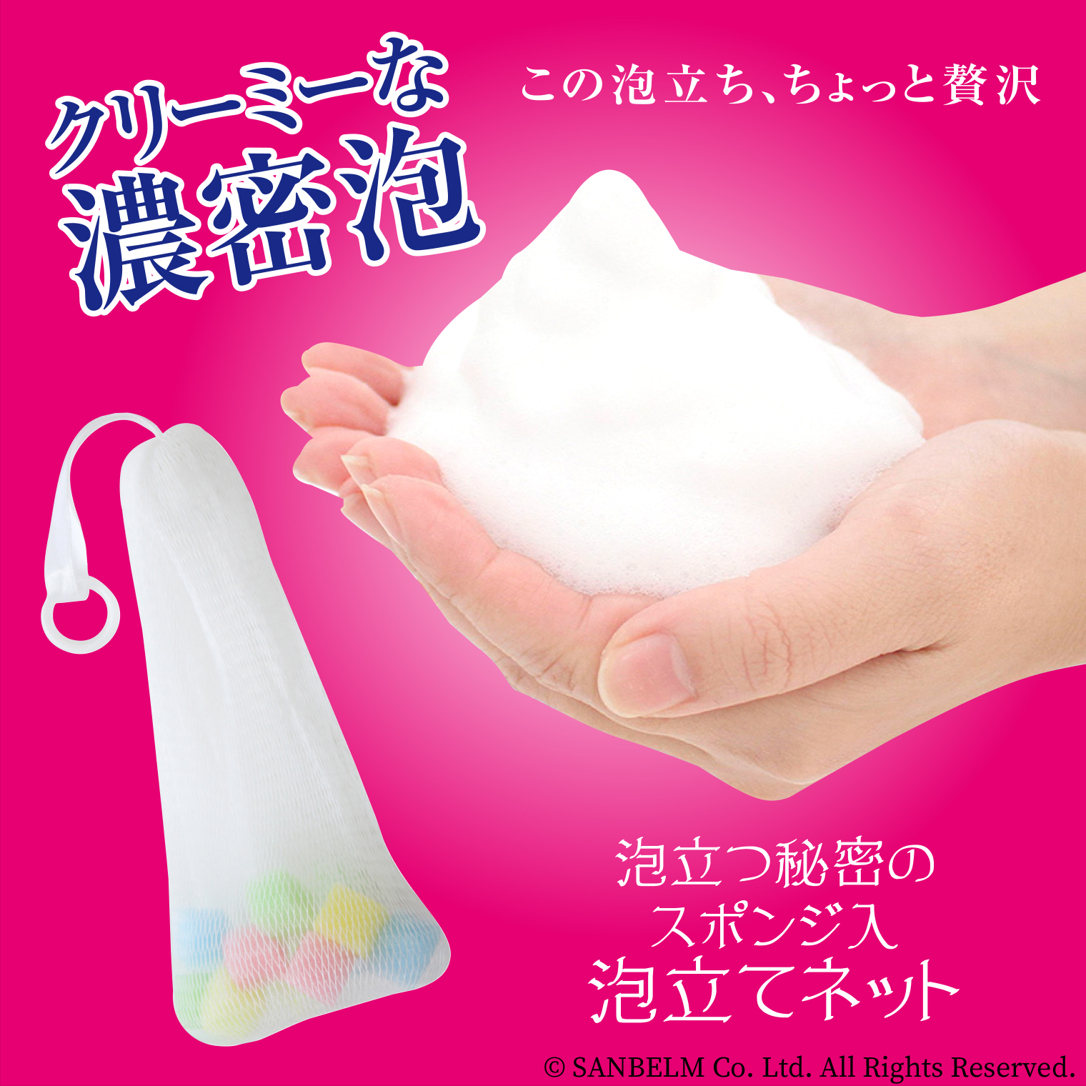 泡持ち用のスポンジが入った泡立てネットです。まるでホイップのようなキメ細かい濃密泡を作ることができます。