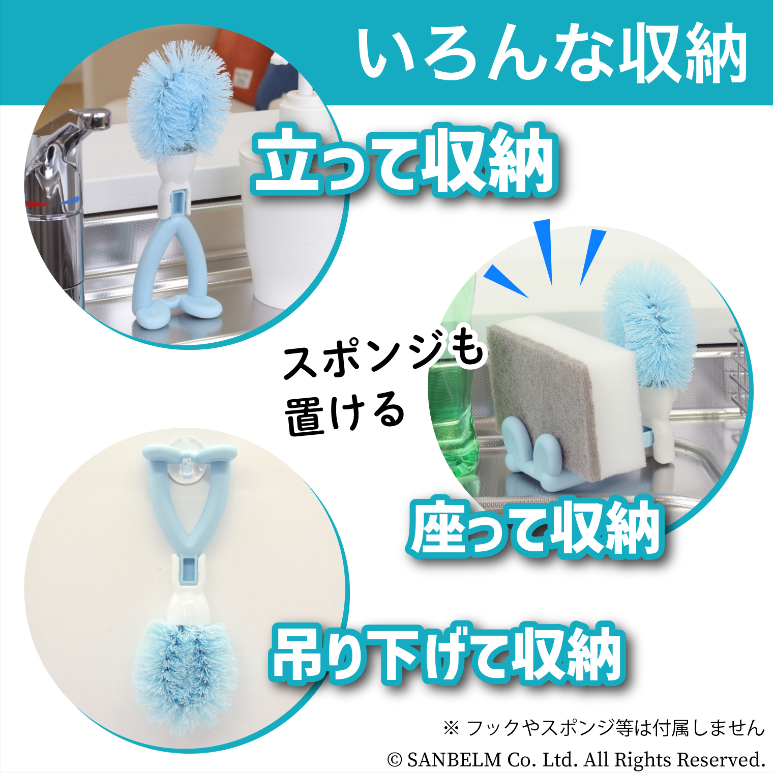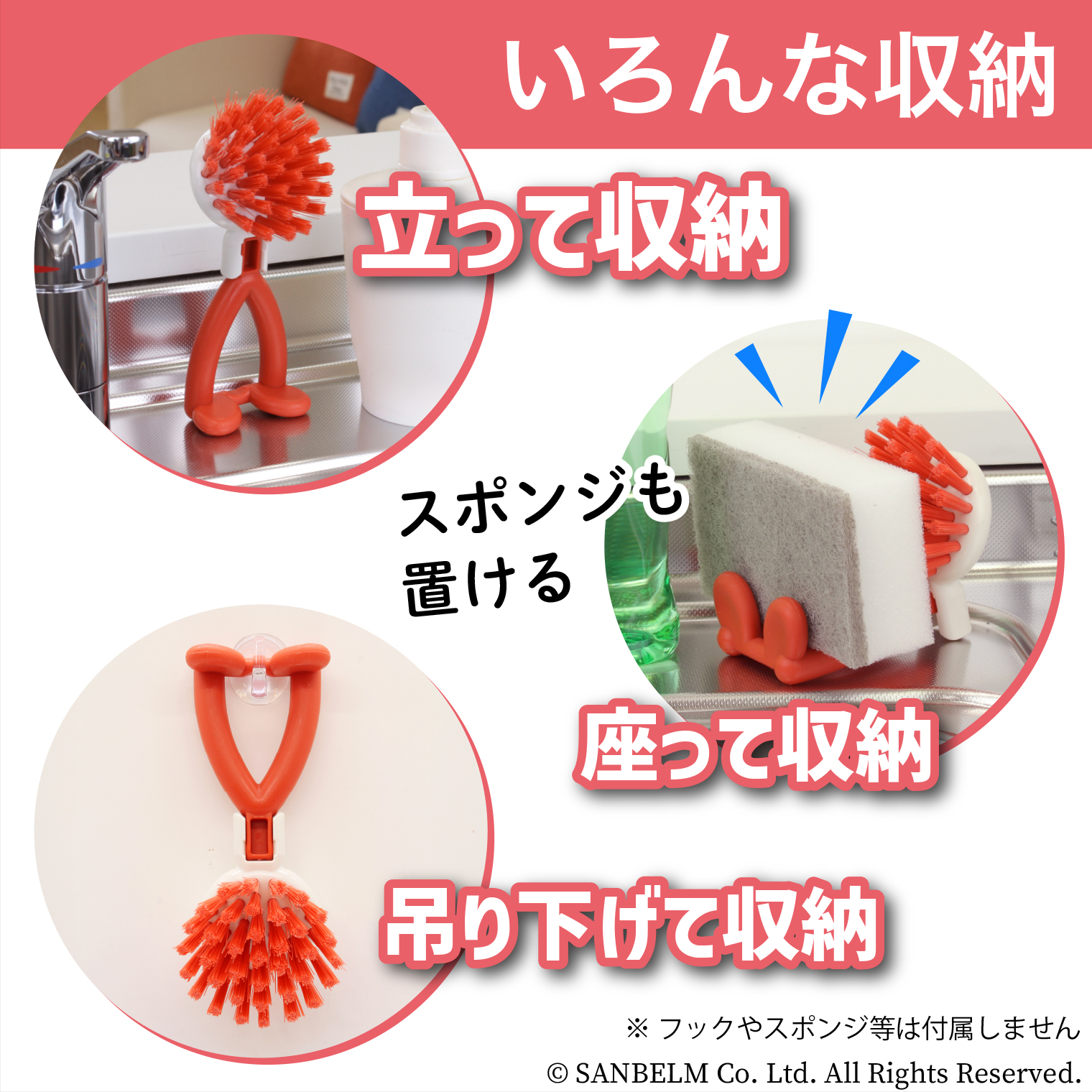 立つ・座る・吊るす収納ができる、キッチン用ブラシです。ざるやおろし金、シンクや排水口、焼き網やグリルパンなど、それぞれの掃除場所に最適なブラシシリーズです。