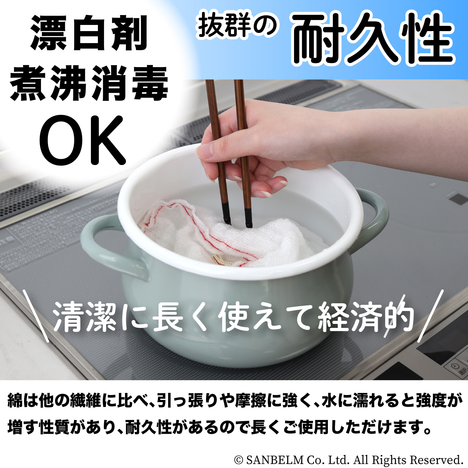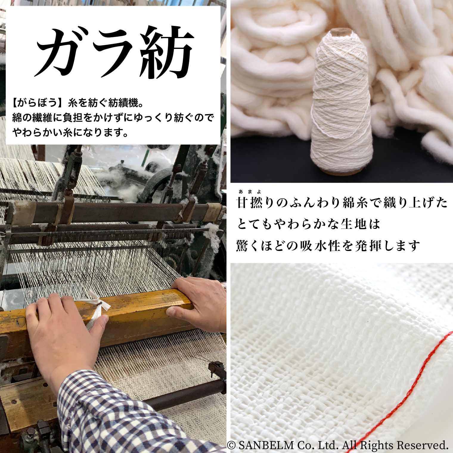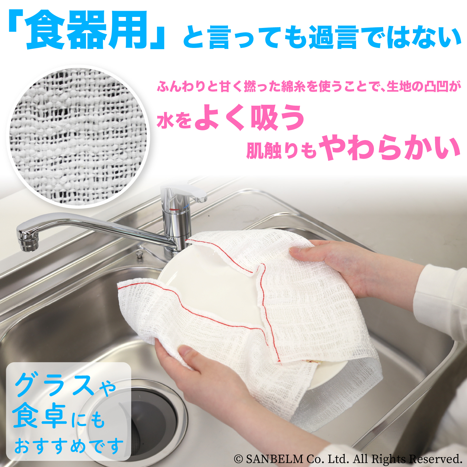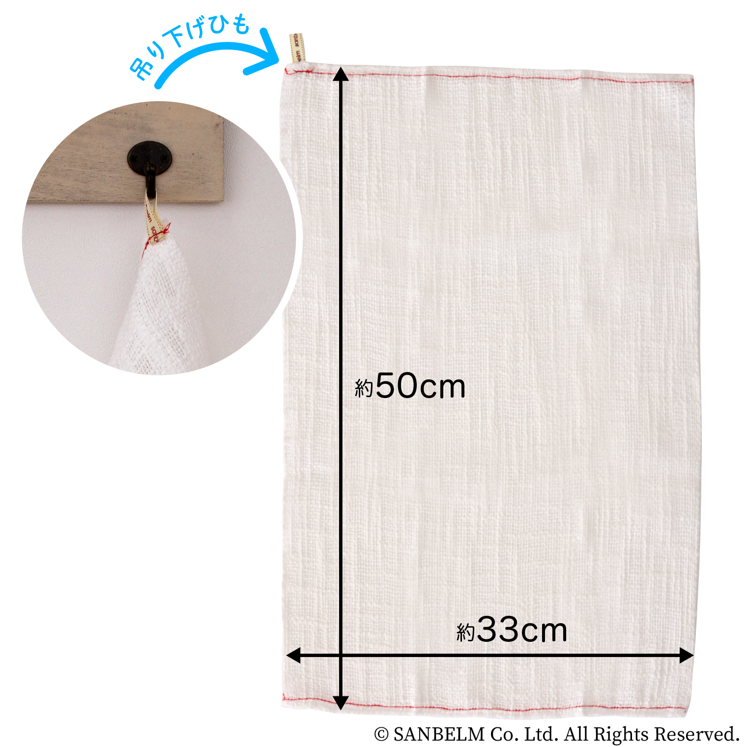 ガラ紡でつくられた甘撚りのふんわりとした大判サイズのふきんです。絞りやすく、やわらかい凹凸生地が吸水力抜群です。