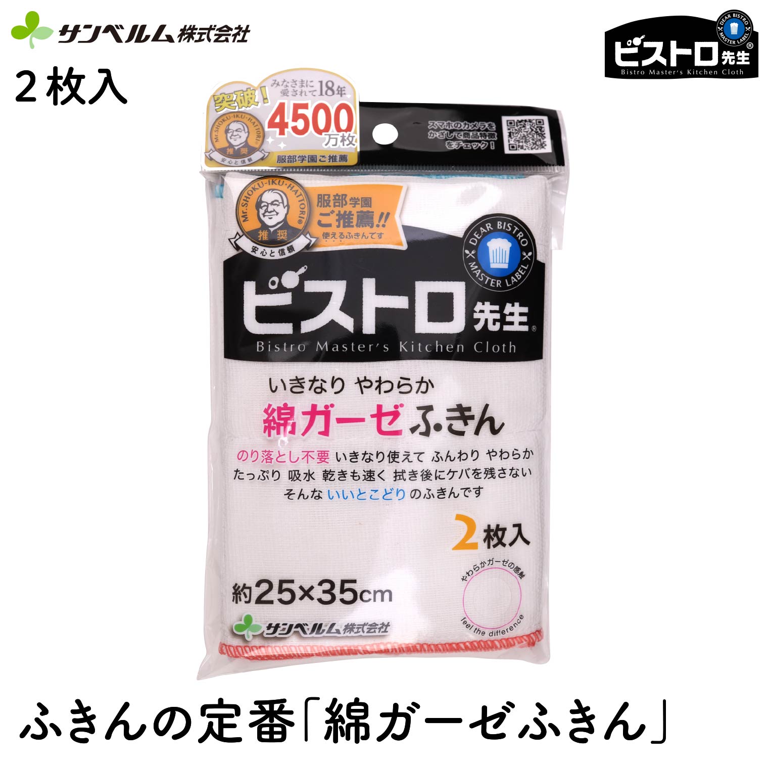 ビストロ先生 綿ガーゼふきん2枚入