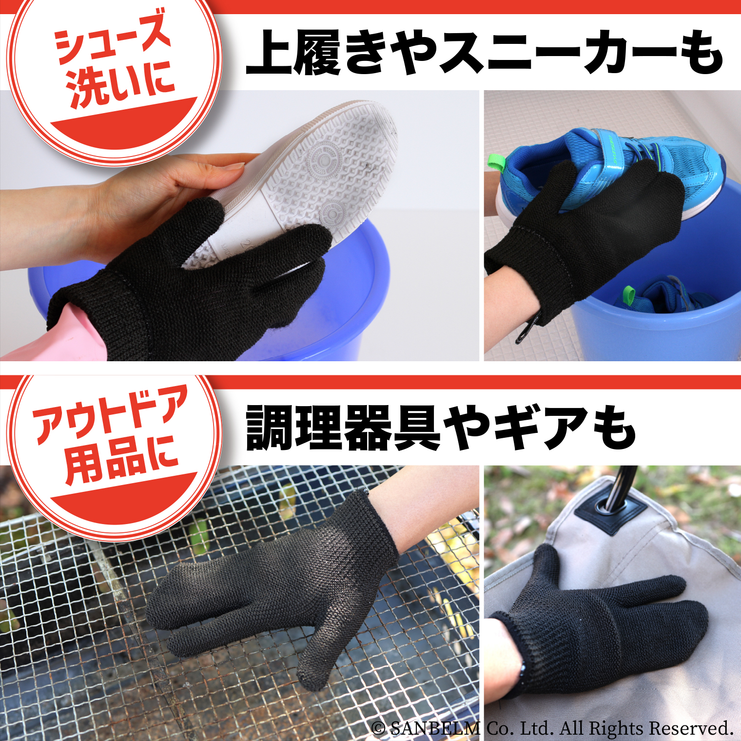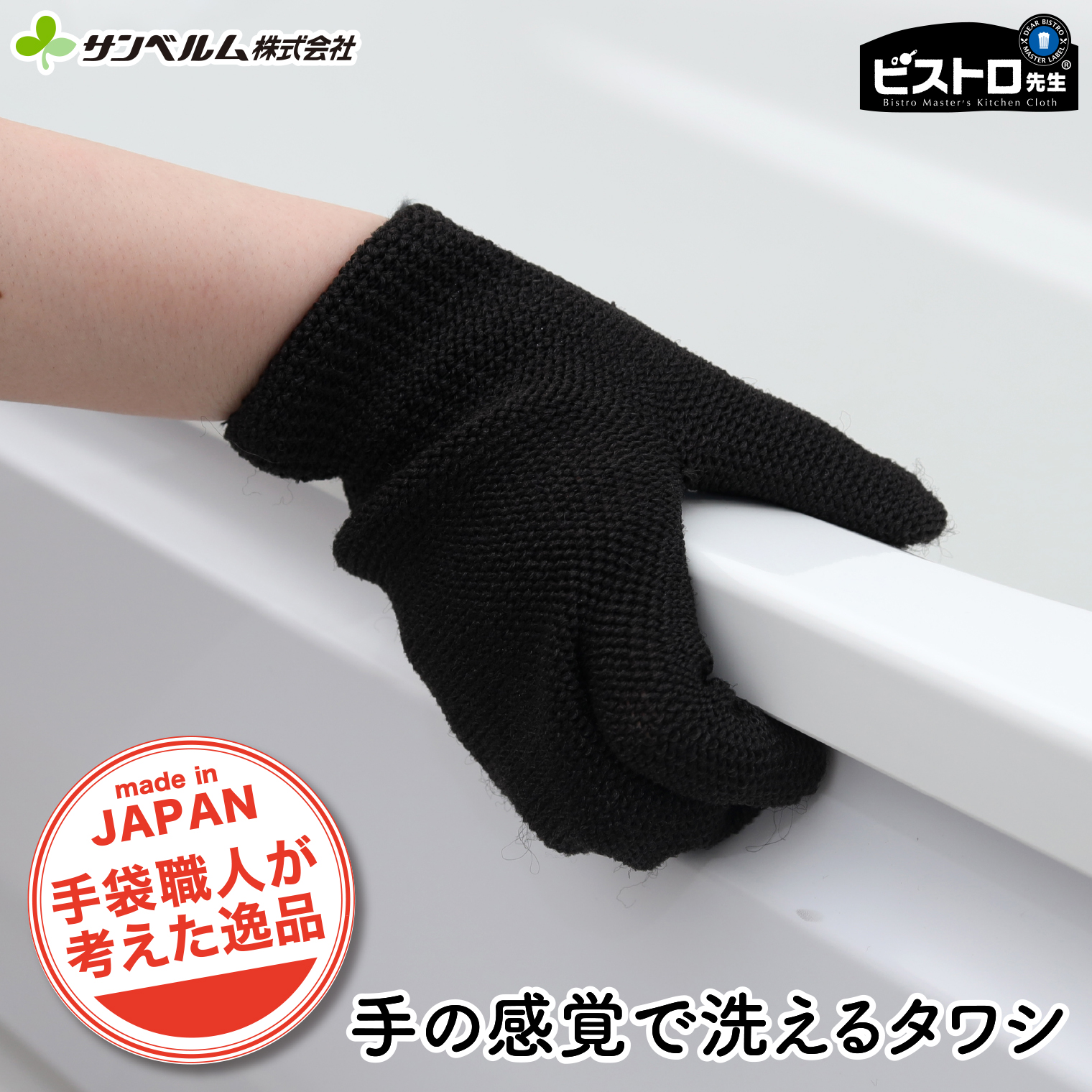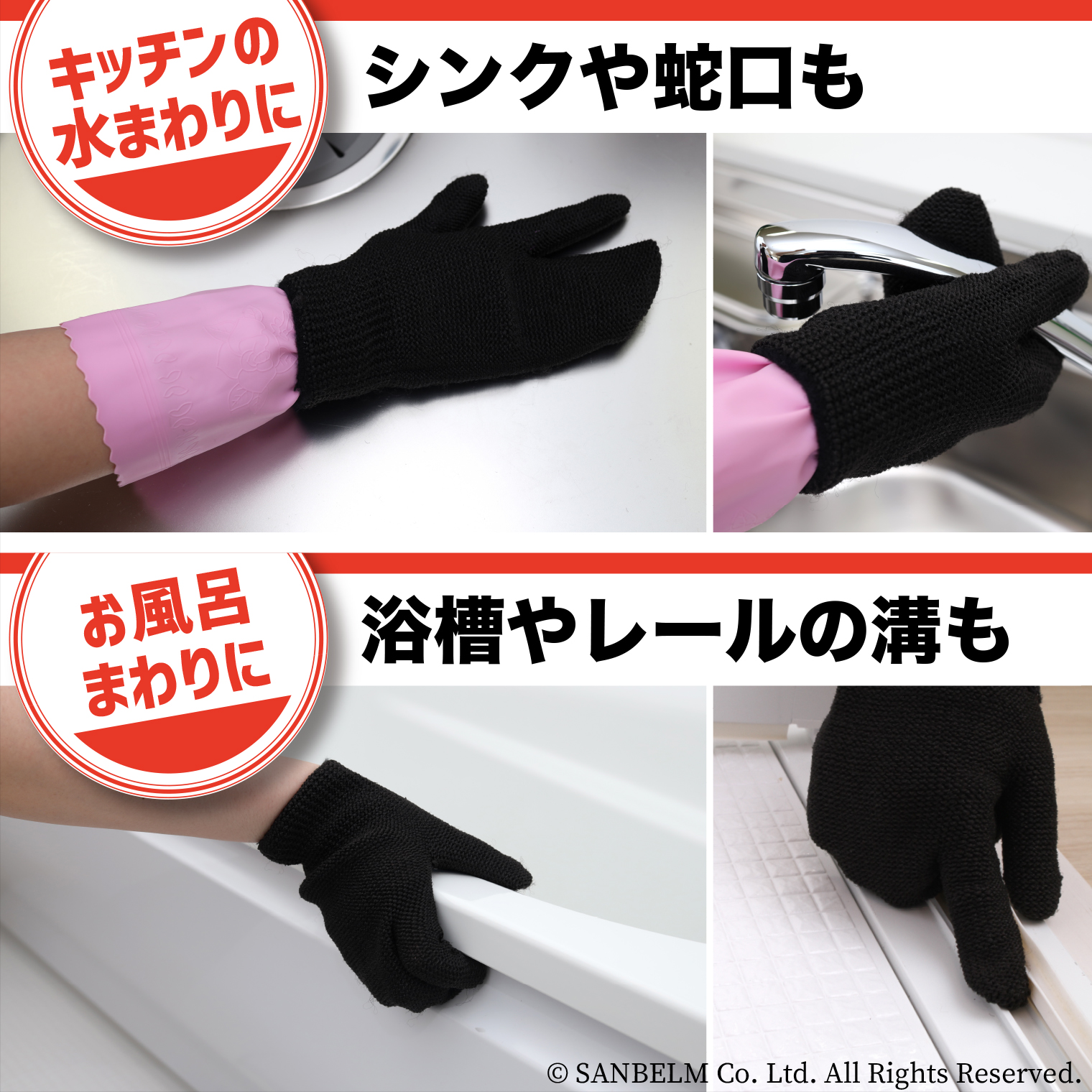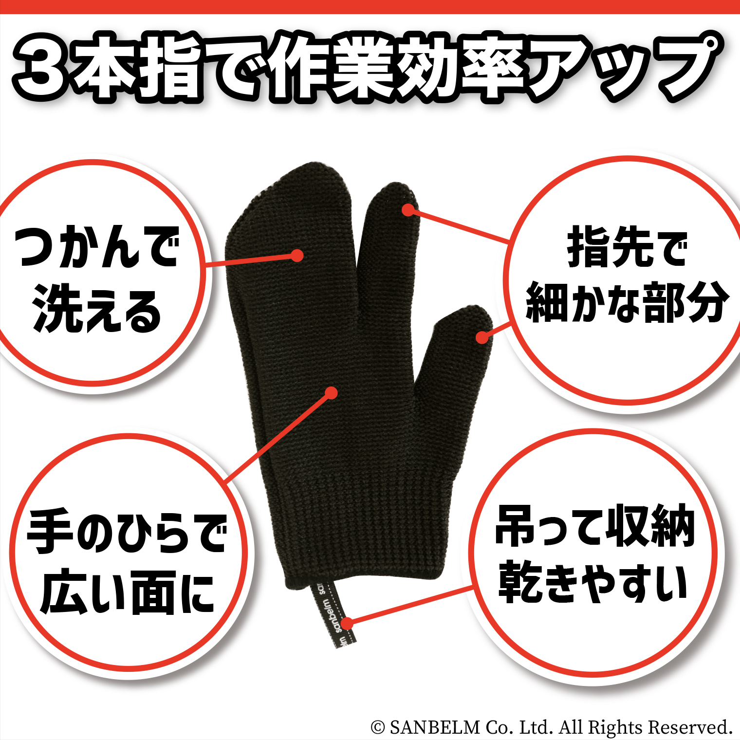 細かい隙間も掃除がしやすい3本指形状の手袋型タワシです。異形断面の繊維が水だけで汚れを落とします。広い面は手の平全体を使って、細かい隙間は指先を使って洗えるから、掃除がしやすく力を入れてこすりやすい。