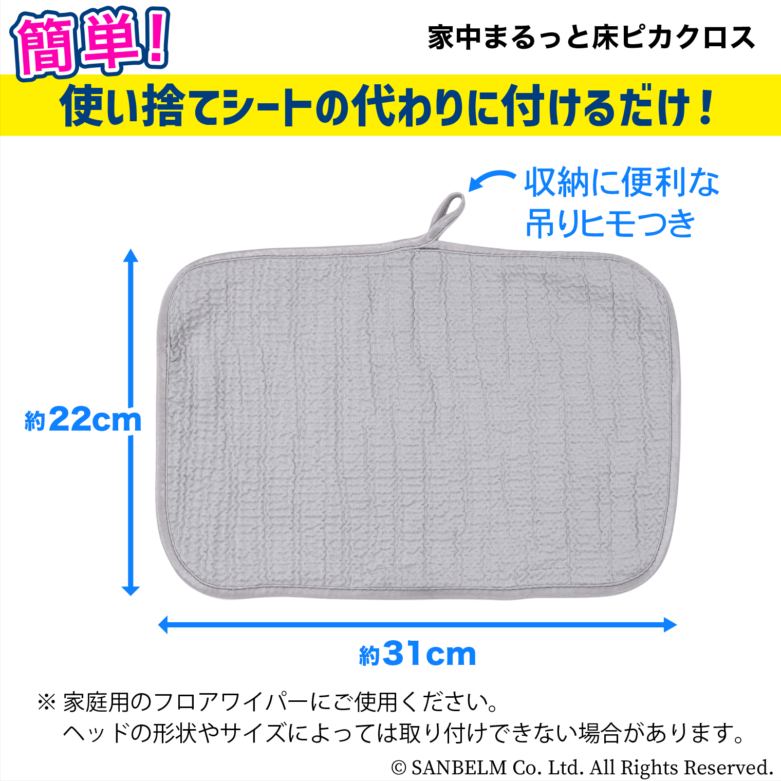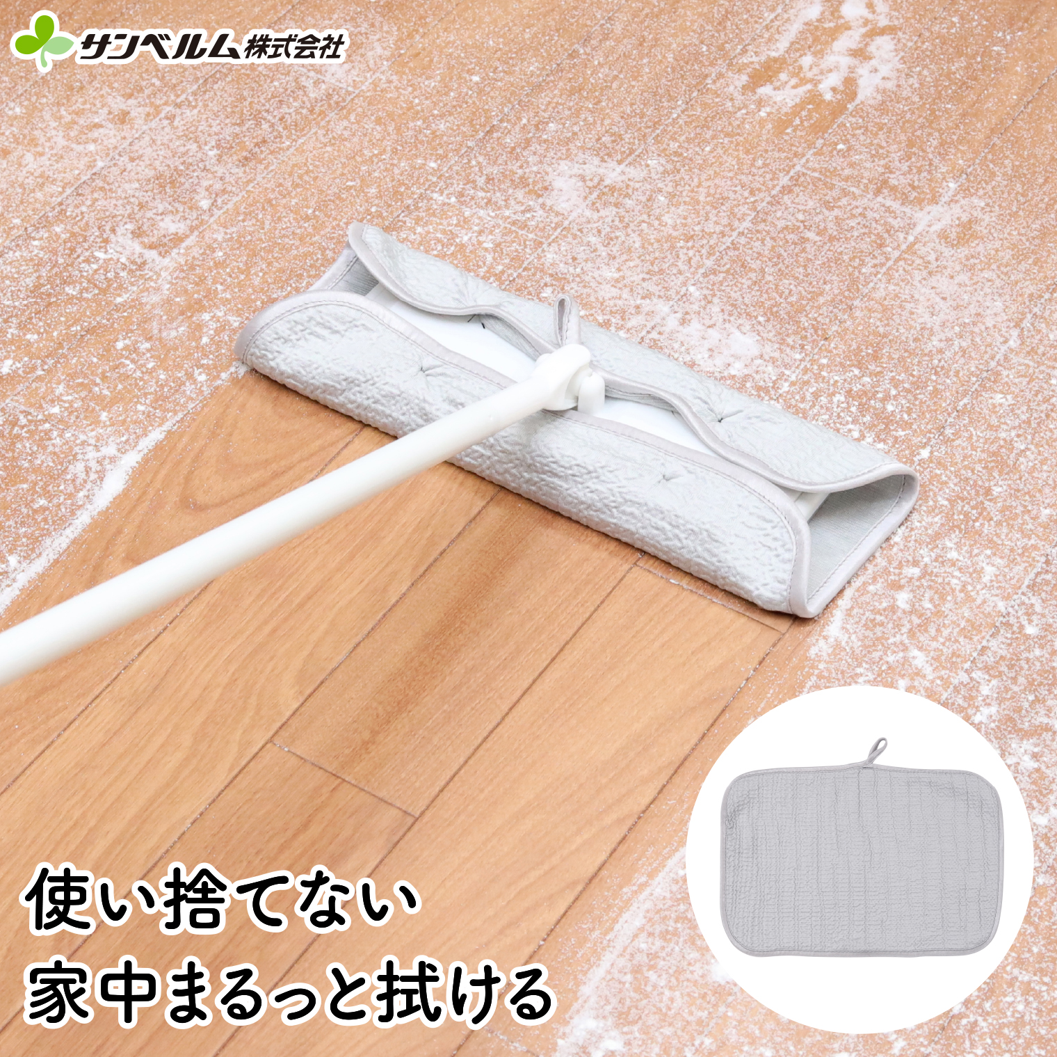 お持ちのフローリングワイパーに取り付けるだけで、家中まるっとお掃除ができるクロスです。特徴的な凹凸生地が全面でホコリや汚れをキャッチ。水だけでクロスに付いた汚れも簡単に落ちるから、お手入れ簡単。