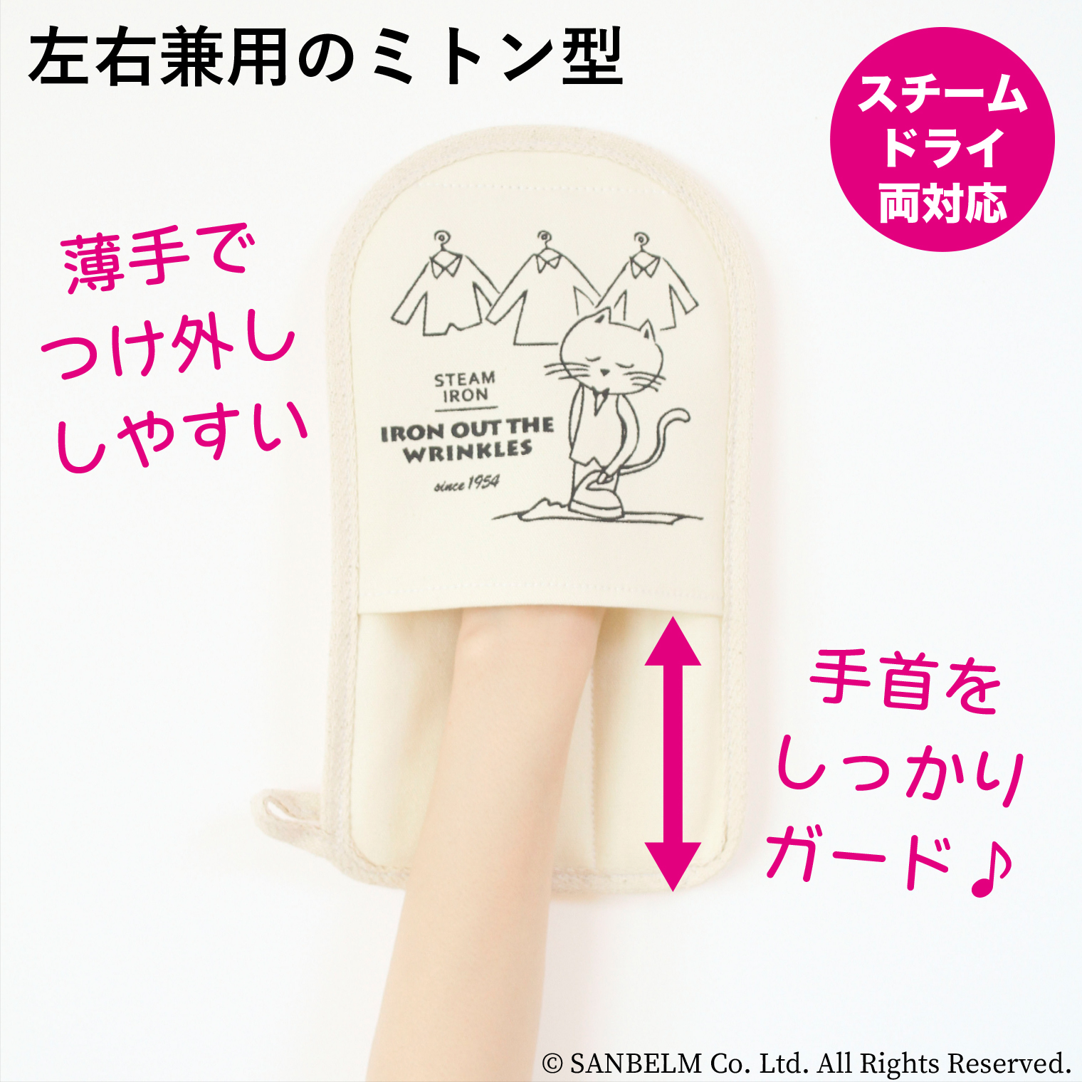 衣類スチーマーがさらに使いやすくなる、らくらくパッドです。熱が伝わりにくい6層構造で、手首までしっかりガードできるから安心。