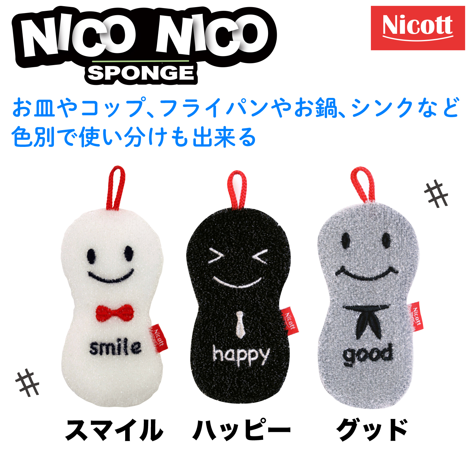 キッチン キッチンスポンジ ニコニコスポンジ スマイル/グッド/ハッピー330円(税込) 商品のご購入は下記「楽天市場」公式ストアよりお願いいたします。 https://item.rakuten.co.jp/sanbelm-shop/nikoniko/ Tweet 申し訳ございませんが、只今品切れ中です。 支払い方法について|配送・送料について|返品について 商品情報 品名 ニコニコスポンジ スマイル/グッド/ハッピー 材質 表面:PET 中芯:ポリウレタンフォーム サイズ 約(W)8×(D)2×(H)15cm ※吊りヒモ含まず 品番 K72611:グッド K72712:ハッピー K72813:スマイル JAN 4522021-201748:グッド 4522021-201755:ハッピー 4522021-201762:スマイル 入数 1